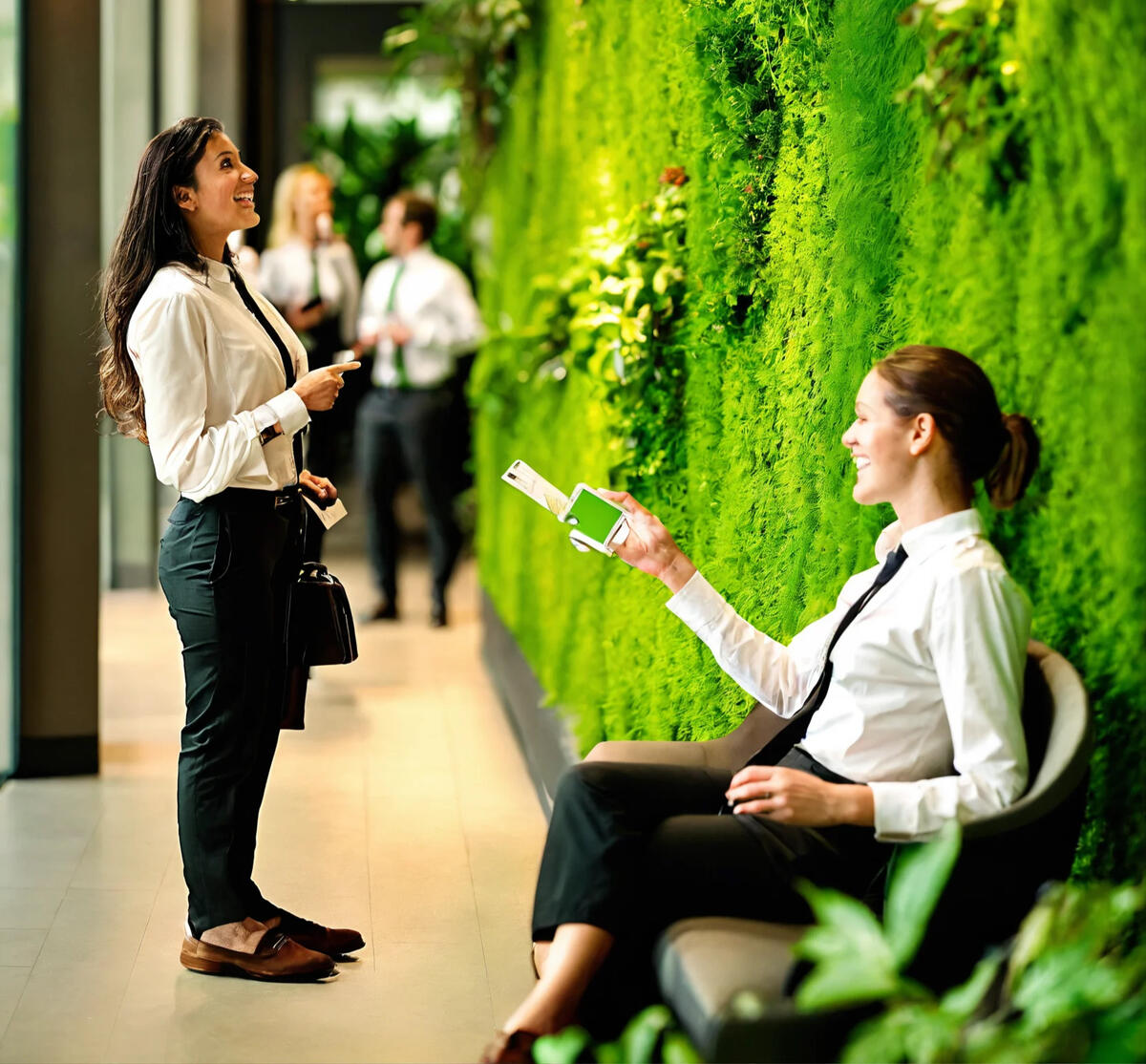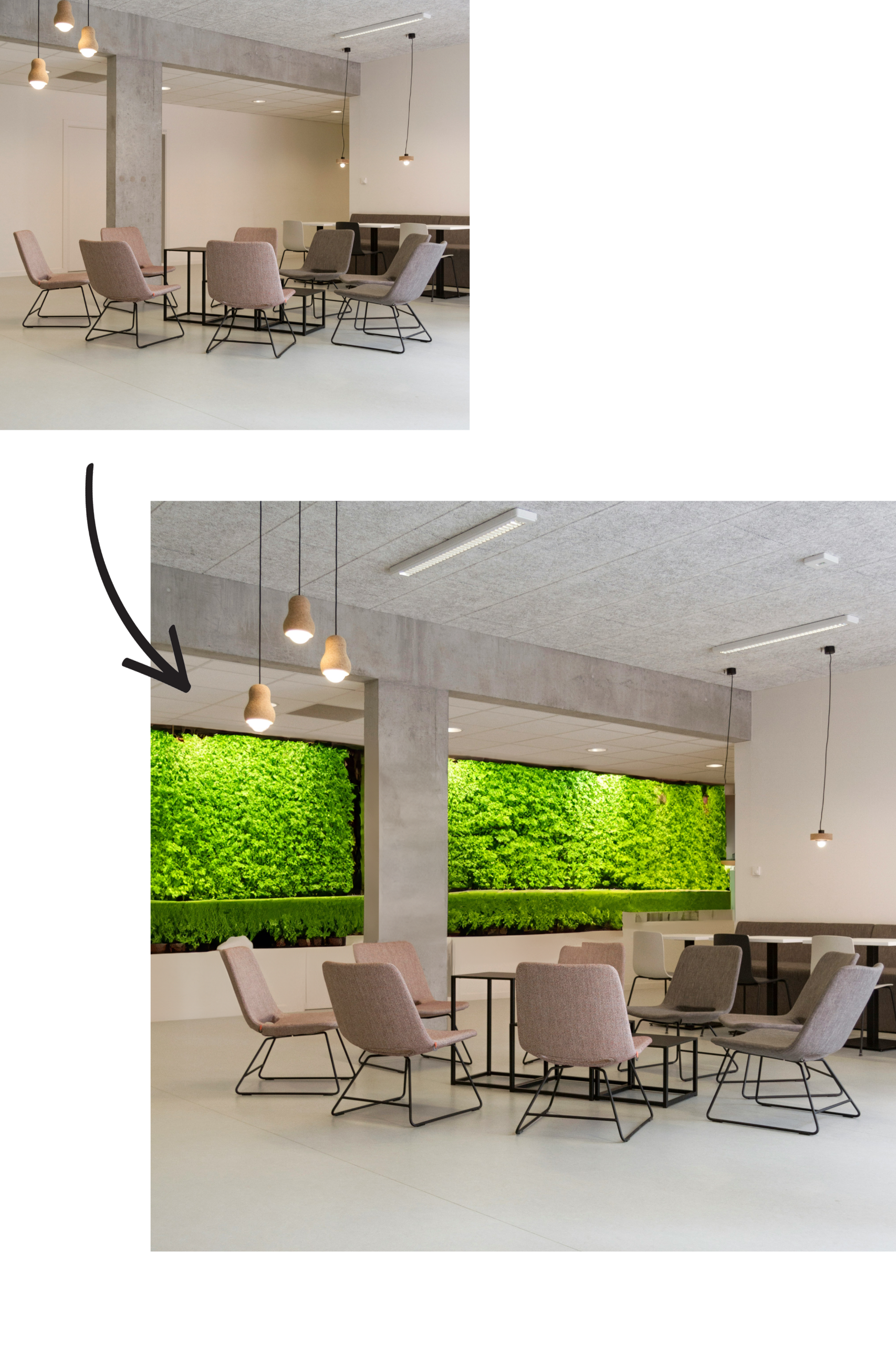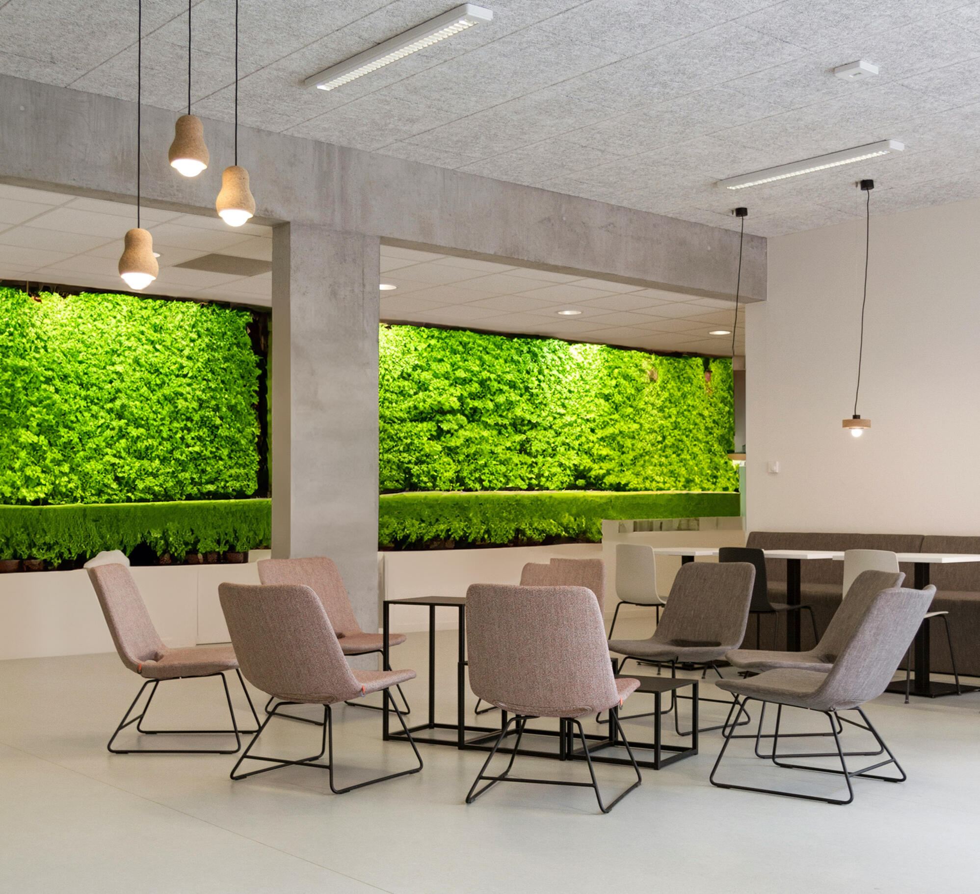 Wir schaffen ökologische Verbesserung und ästhetische Aufwertung Ihres Arbeitsplatzes durch individuelle Lösungen, die sich nahtlos in Ihr Markenimage einfügen.Steigern Sie mit uns das Wohlbefinden und die Produktivität Ihres Unternehmens durch biophiles Design.